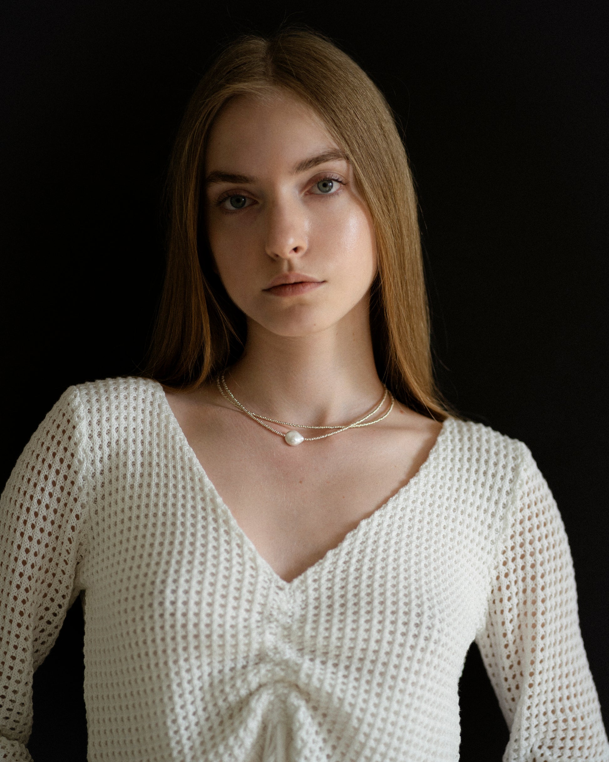A delicate handcrafted choker made from fine Japanese seed beads and genuine freshwater pearls. Its minimalist elegance makes it perfect for layering or wearing on its own.